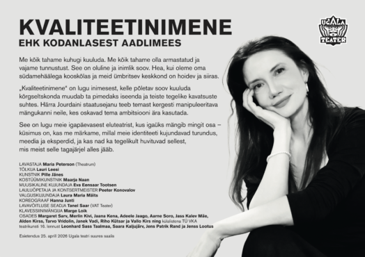 Moliere’i “Kvaliteetinimene ehk Kodanlasest aadlimees” on ajaproovile vastu pidanud üle 300 aasta. See on mänguline ja humoorikas lugu mehest, kes on veendunud, et tema tõeline elu algab alles siis, kui ta riietub õigesti, räägib õigesti ja liigub õigetes ringkondades. Selle unistuse tõukejõuks on müstiline daam, kes on tema südame kiiremini põksuma pannud.